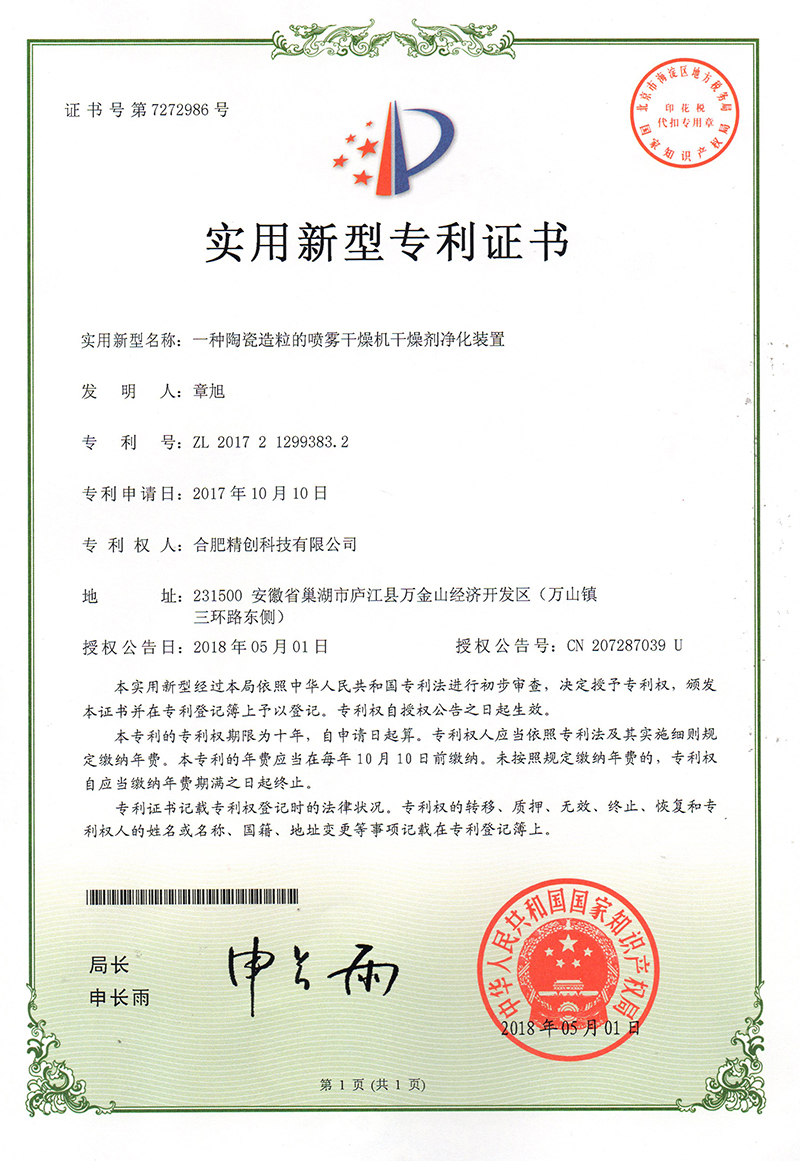 (2018實用新型)一種陶瓷造粒的噴霧干燥機干燥劑凈化裝置